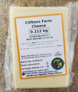 | Cliftons Farm cheese – Crumbly & Tangy | various weights | £16.00/kg | £20.00/kg | £20.00/kg | ![]() |